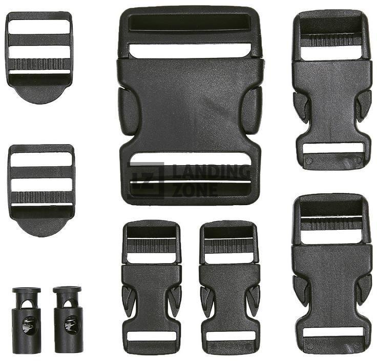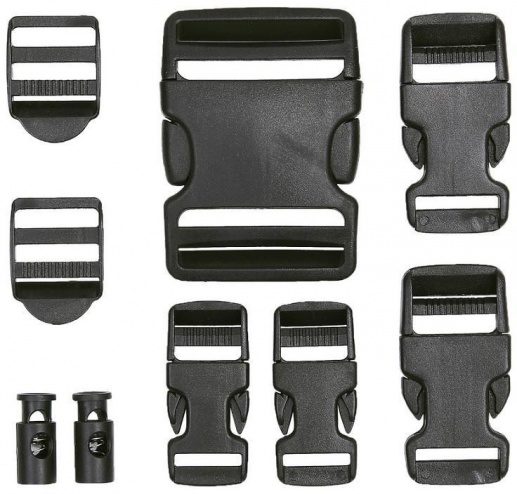 Komplet vsebuje 10 kosov zaponk. Dimenzije so razporejene od največje do najmanjše. Uporabne so za nahrbtnike, transportne torbe, paracord zapestnice,...
