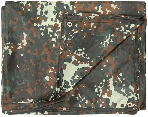 Vodotesna in izjemno lahka basha v flectarn vzorcu. Idealna za uporabo kot ponjava, zaščita pred dežjem ali soncem. Kovinske rinke za pritrjevanje s klini ali vezavo z vrvjo. Pakirana v prenosni vrečki.