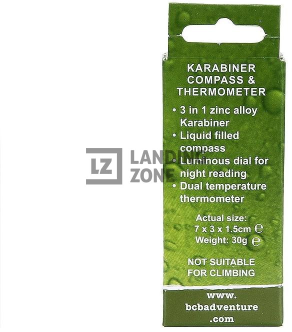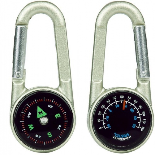 3 v 1 karabin iz cinkove zlitine s svetlečo številčnico za nočno branje ter dvojnim termometrom za merjenje temperature. Ta karabin je popoln za pohodništvo ali pustolovščine na prostem.