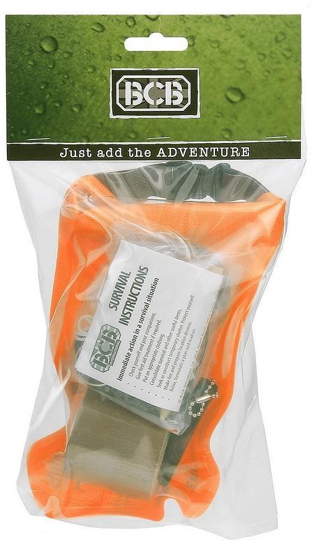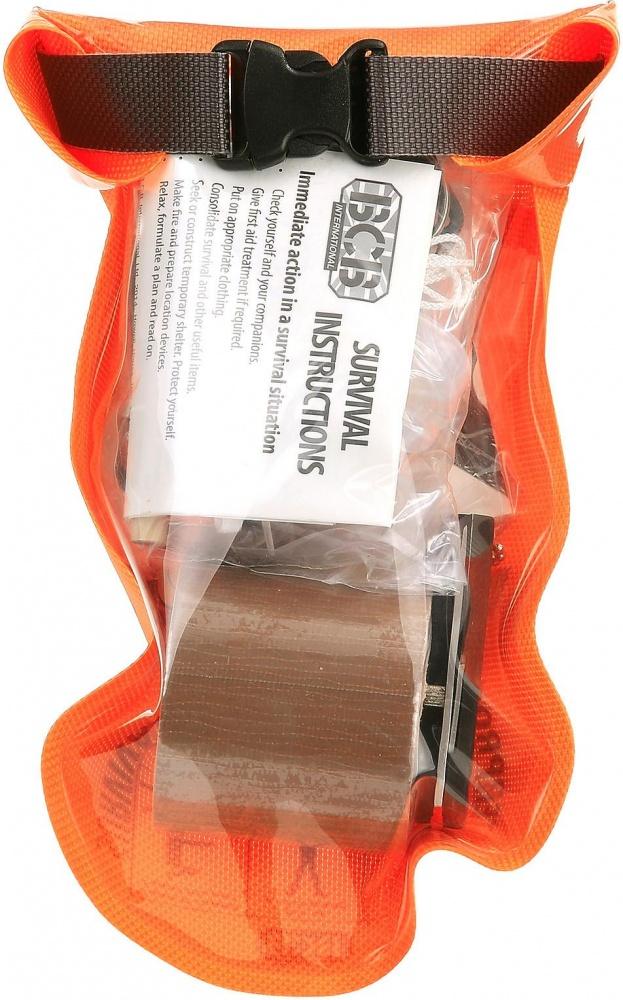 Vodoodporni certificirani BCB komplet za preživetje je lahek, vodotesen, z varnostnim pasom in vrvico s pomočjo katere je nosljiv okoli vratu. Vodotesna spravilna vrečka je primerna za raznoliko uporabo (prenašanje vode, ravnotako služi kot signalizacijski pripomoček, varuje pred umazanijo, prahom, peskom in vodo,...)