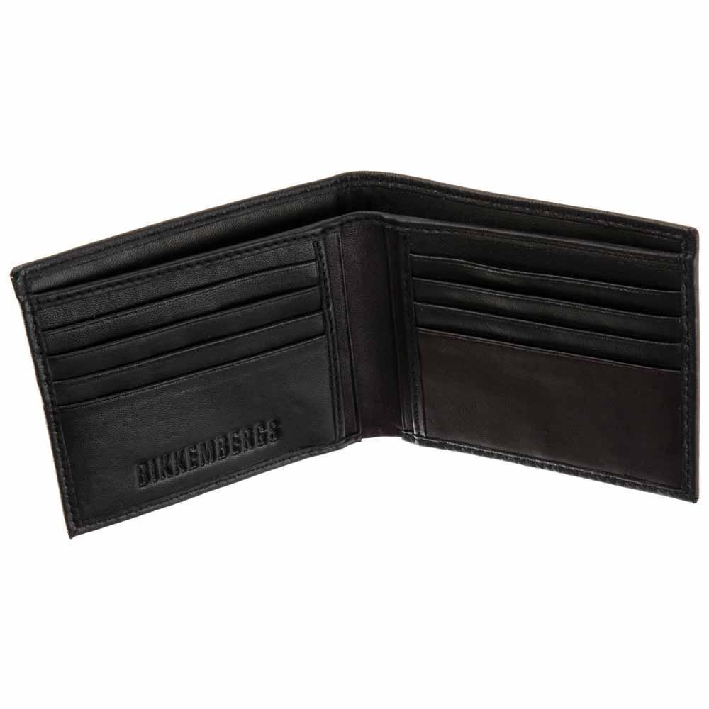 Klasična usnjena denarnica proizvajalca Bikkembergs. Vsebuje prekat za bankovce ter 8 žepov za kartice.