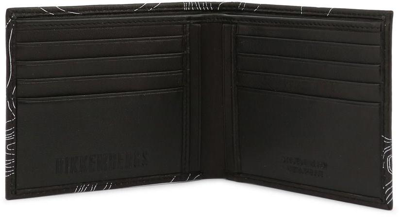 Klasična usnjena denarnica proizvajalca Bikkembergs. Po denarnici so rahlo svetleči vzprčki in napis v črni barvi. Vsebuje prekat za bankovce ter 8 žepov za kartice.