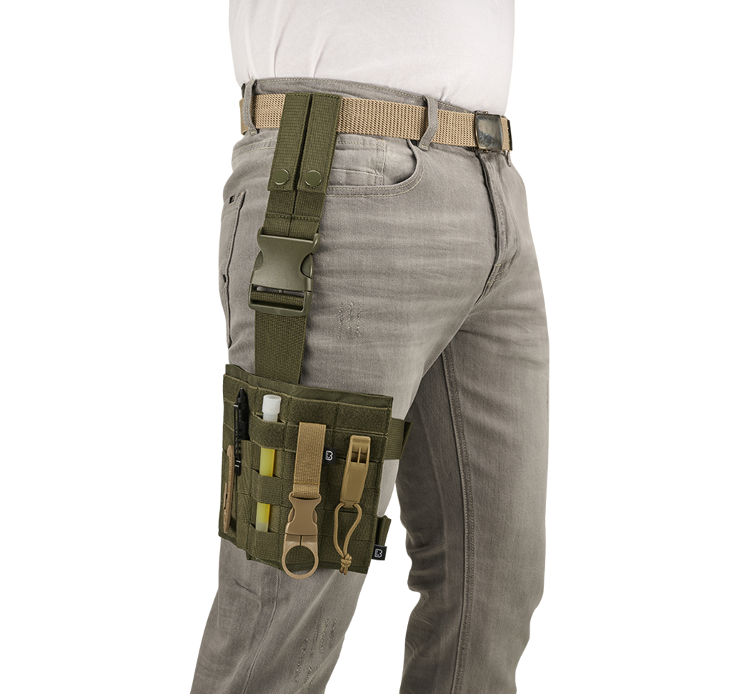 Univerzalni molle panel za nogo. Molle kanali omogočajo namestitev torbic in tokov.
