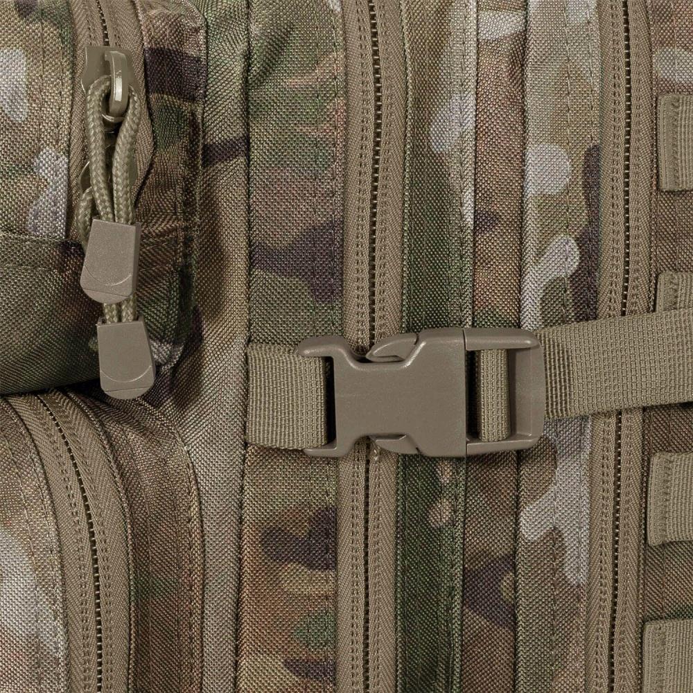 Praktičen modularni nahrbtnik US Cooper, proizvajalca Brandit, je zasnovan za izjemno uporabnost in udobje med nošenjem. Nahrbtnik se zapira z dvostransko zadrgo, kar omogoča enostaven dostop do vsebine. Opremljen je z dvema prekatoma, ki ponujata dobro preglednost, ter številnimi žepi in organizatorji za optimalno organizacijo vaših potrebščin. Glavni prekat je prostoren, primeren za shranjevanje večjih predmetov, medtem ko se na sprednjem prekatu nahajata dva manjša žepa za shranjevanje manjših predmetov, na primer ključev ali telefona. Nahrbtnik ima tudi kompresijske trakove ob straneh in na podnji strani, ki omogočajo prilagajanje volumna in stabilnost nahrbtnika. Oblazinjeno hrbtišče zagotavlja udobno nošenje in dobro pretočnost zraka, medtem ko so naramnice nastavljive in oblazinjene za dodatno udobje med nošenjem. Bočni in prsni pas sta nastavljiva za popolno prileganje in dodatno stabilnost med premikanjem. Na sprednji strani in ob straneh nahrbtnika so nameščeni molle kanali, ki omogočajo pritrditev dodatne opreme ali dodatkov po vaši izbiri.
