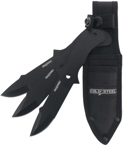 Cold Steel Set treh metalnih nožev. Rezila so izdelana iz 420 nerjavečega jekla in premazana s črnim oksidom, ki povečuje odpornost na praske. Priložen najlonski etui za spravilo in varno prenašanje nožev.