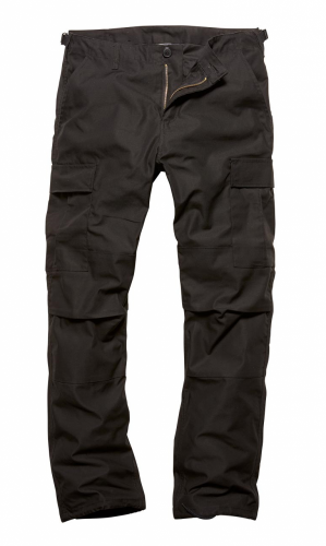 Hlače v črni barvi - US BDU kroju proizvajalca Vintage Industries. Izjemno kakovostna izdelava, dvojni šivi na kolenih in v razkoraku hlač. Hlače imajo šest žepov: dva stranska, dva prednja ter dva stegenska žepa, ki se zapirata z gumbi. Idealne za prosti čas, modno nošenje ali kot delovne hlače.