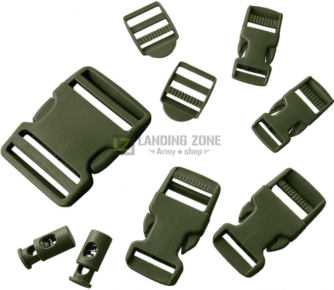 Komplet devetih zaponk uporabnih za nahrbtnike, transportne torbe, paracord zapestnice,...