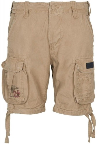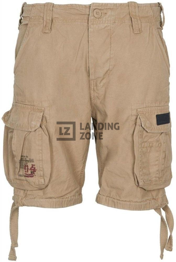Kratke cargo hlače "Airborn Vintage" izpranega, modnega videza. Številni žepi, ki se pod poklopci zapirajo s potisnimi gumbi nudijo dovolj odlagalnega prostora. Hlače se zapenjajo z gumbi, všiti zatezni trakovi v pasu in hlačnicah. Izdelane iz kakovostnega in na otip prijetnega bombaža, ki zagotavlja udobno nošenje. Na levem stranskem žepu se nahaja velkro osnova za pitrditev našitka. Priložena sta našitka ameriške in nemške zastave.