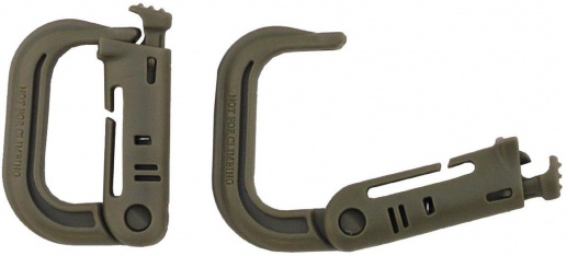 Set dveh karabinov. Zahvaljujoč strukturirani površini na odpiralnem zatiču, je uporaba preprosta tudi z rokavicami ali mokrimi rokami. Primerna za namestitev na molle zanke.