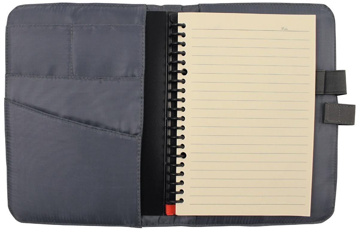 Rokovnik z oblazinjenimi platnicami. Na sprednji strani je odstranljiv velcro našitek. Na notranji strani se nahajata dva predelka za spravilo pisala in štirje prekati za spravilo orientacijskih kart, dokumentov...