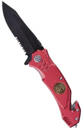 Preklopni reševalni nož z emblemom gasilske brigade. Zanesljiv spremljevalec v vsakodnevnih izzivih, ki združuje moč, funkcionalnost in varnost. Rezilo izdelano iz nerjavečega jekla. Aluminijast ročaj zagotavlja odličen oprijem in udobje med uporabo. Na oplati ročaja je nameščena zaponka, zato se nož zlahka pritrdi na pas ali žep, kar olajša prenašanje in dostopnost. Vključuje tudi rezalnik varnostnih pasov in konico za razbijanje stekla, ki sta izjemno koristna v nujnih situacijah. Še posebej pa izstopa v situacijah, kjer je hitra in učinkovita odzivnost ključnega pomena.