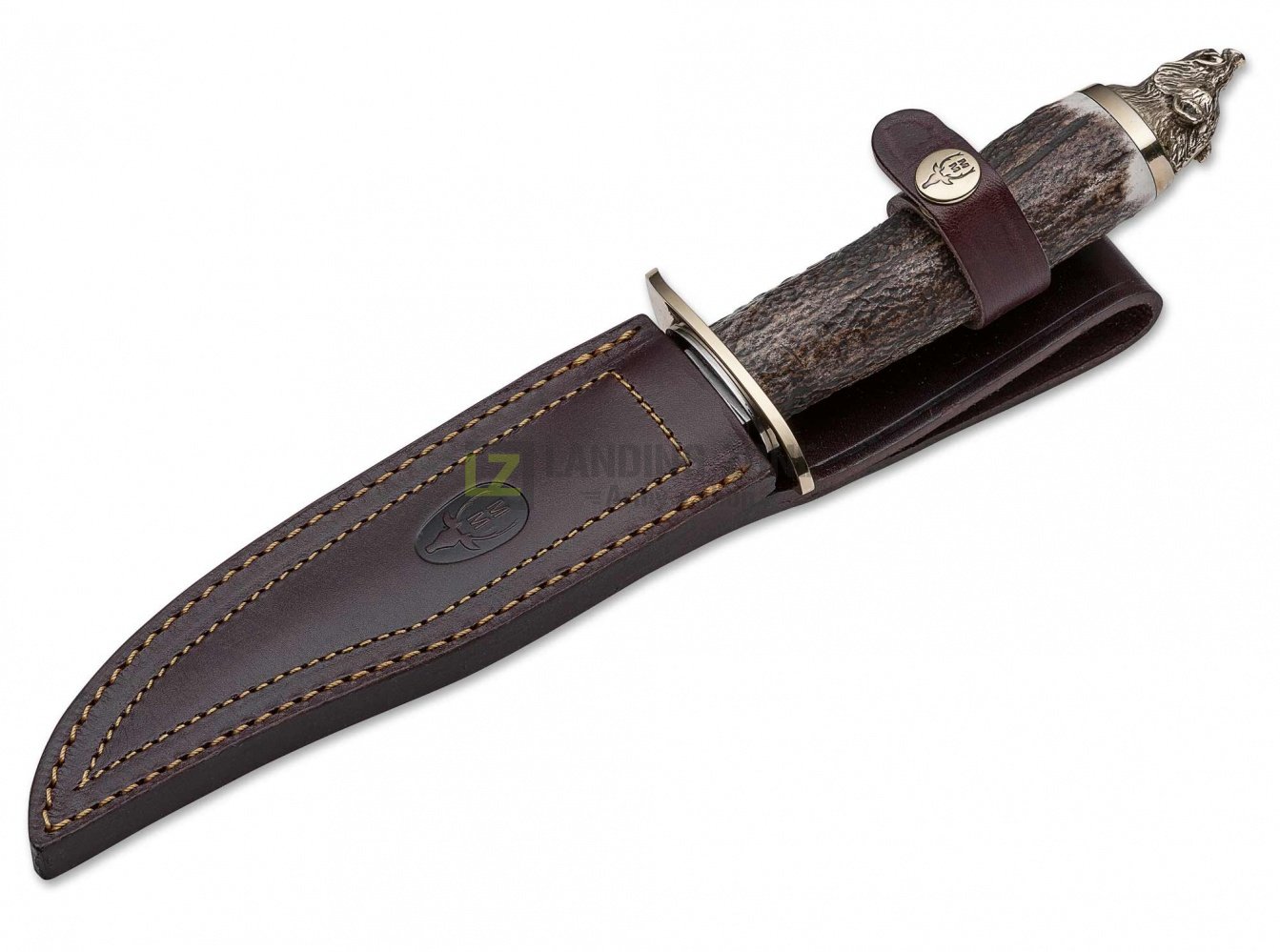 Muela Wildboar Hirschorn je izjemno eleganten in funkcionalen lovski nož, ki izraža mojstrstvo španskega proizvajalca Muela. Zasnovan je za strastne lovce, ki cenijo kombinacijo vrhunskega oblikovanja in visokokakovostnih materialov. Rezilo noža je izdelano iz visokokakovostnega nerjavečega jekla (4116), kar zagotavlja izjemno ostro rezilo, trpežnost ter odpornost na korozijo. Držalo noža je izdelano iz jelenovega roga, ki mu dodaja naraven in privlačen videz. Jelenov rog zagotavlja trpežnost in ergonomičen oprijem, kar omogoča udobno in varno uporabo noža med lovnimi avanturami. Nožu je priložen tudi kakovosten usnjen etui.