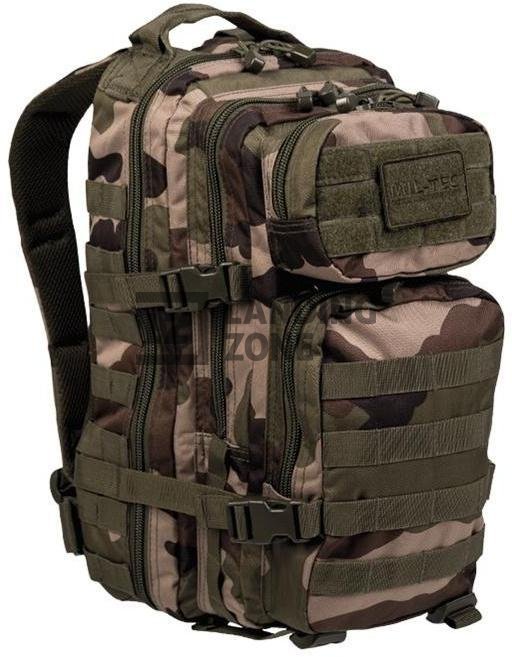 Praktičen modularni nahrbtnik Assault I. proizvajalca Miltec. Odličen vsakdanji sopotnik za aktivno uporabo na izletih, potovanjih, kot šolski nahrbtnik,... Dva velika prekata nahrbtnika sta v notranjosti opremljena z mrežnimi žepi, ki omogočajo enostavno in učinkovito organizacijo opreme. Dva dodatna vrhnja žepa sta namenjena spravilu opreme do katere potrebujemo hitrejši dostop (telefon, denarnica, ključi,... ). Nahrbtnik Assault je opremljen z molle trakovi, ki omogočajo dodajanje molle kompatibilnih torbic in s tem povečanje volumna po potrebi.