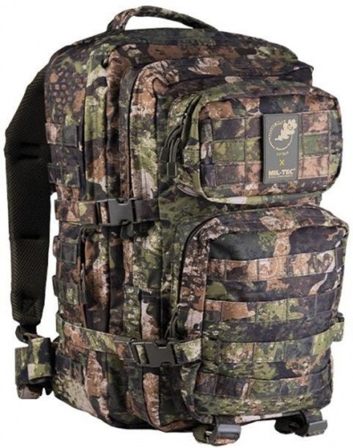 Praktičen, večji modularni nahrbtnik Assault II. proizvajalca Miltec. Odličen vsakdanji sopotnik za aktivno uporabo na izletih, potovanjih, kot šolski nahrbtnik,... Dva velika prekata nahrbtnika sta v notranjosti opremljena z mrežnimi žepi, ki omogočajo enostavno in učinkovito organizacijo opreme. Dva dodatna vrhnja žepa sta namenjena spravilu opreme do katere potrebujemo hitrejši dostop (telefon, denarnica, ključi,... ). Nahrbtnik Assault je opremljen z molle trakovi, ki omogočajo dodajanje molle kompatibilnih torbic in s tem povečanje volumna po potrebi.
