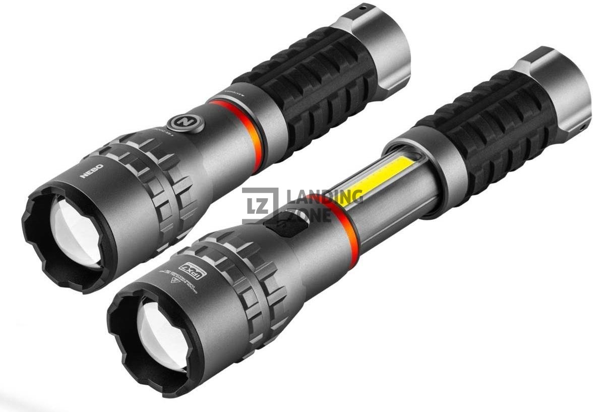 Robustna in vsestransko uporabna ročna svetilka SLYDE KING 4K, proizvajalca Nebo. Je visoko zmogljiva saj ponuja 4.000 lumnov svetlobe s 4-kratnim zoomom in 1.000 lumni moči delovne svetlobe COB. Obe luči sta opremljeni z možnostjo zatemnitve in pomnilnika moči za ravno pravo količino svetlobe, kar omogoča prilagoditev svetlobe glede na potrebe uporabnika. Je polnilna in vodoodporna (IPX7) ter vključuje tudi močno magnetno osnovo. Priložena polnilni kabel USB-A v USB-C in vrvica. Gumiran ročaj zagotavlja dober oprijem.