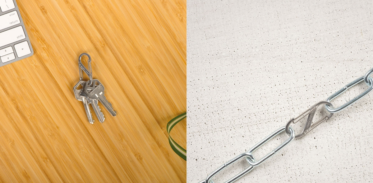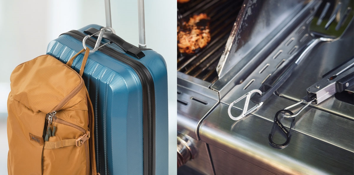 S-Biner komplet dveh dvojnih karabinov. Zasnovan za hitro in enostavno pritrditev s pomočjo edinstvenega sistema dvojnega odpiranja. Izdelan je iz visokokakovostnega nerjavečega jekla, kar zagotavlja trajnost in odpornost proti vremenskim vplivom. Omogoča varno in učinkovito povezovanje predmetov, kot so ključi, orodje, torbe ipd.