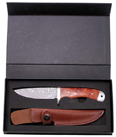 Nož proizvajalca Fox outdoor izdelan iz enainsedemdesetih plasti jekla DAMASK (amatsubu) končnega izgleda. Nožu je priložena usnjena torbica ročne izdelave, ki jo lahko namestimo na pas. Izredno lepa končna obdelava jekla ter kombinacija lesenega držala je vsekakor nekaj posebnega.