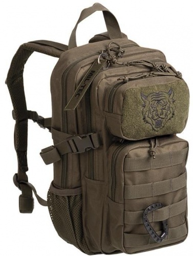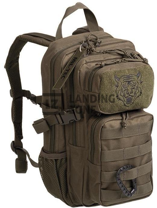 Otroška verzija modularnega nahrbtnika Assault, proizvajalca Miltec. Odličen vsakdanji sopotnik za aktivno uporabo na izletih, potovanjih... Dva velika prekata nahrbtnika sta v notranjosti opremljena z žepi. Na sprednji strani sta dva dodatna žepa ob straneh pa še dva mrežna. Nahrbtnik je opremljen z molle trakovi, ki omogočajo dodajanje molle kompatibilnih torbic in s tem povečanje volumna po potrebi. Oblazinjeno hrbtišče in naramnice obložene z mrežno zasnovo za večji pretok zraka. Naramnice so nastavljive po dolžini. Ob straneh nahrbtnika so kompresijski trakovi. Dvostransko odpiranje in zapiranje nahrbtnika. Na prednji strani se nahaja velcro osnova z vezenim motivom tigra.