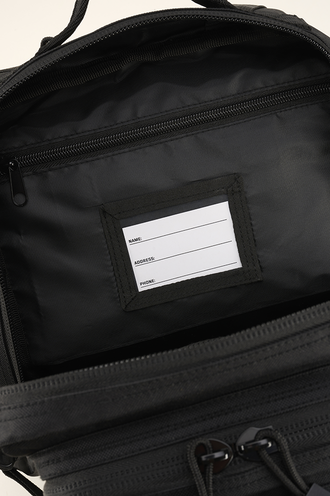 - V glavnem prekatu se nahajajo mrežni žep, žep z zadrgo ter predel z identifikacijko kartico.