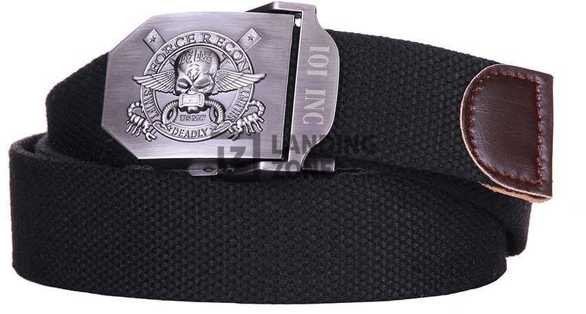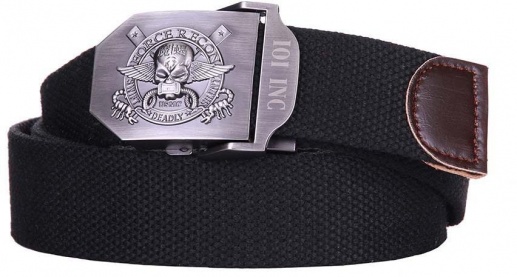Pas za hlače z robustno kovinsko zaponko, ki ima 3D reliefen motiv. Pas je univerzalne dolžine in se lahko poljubno krajša.