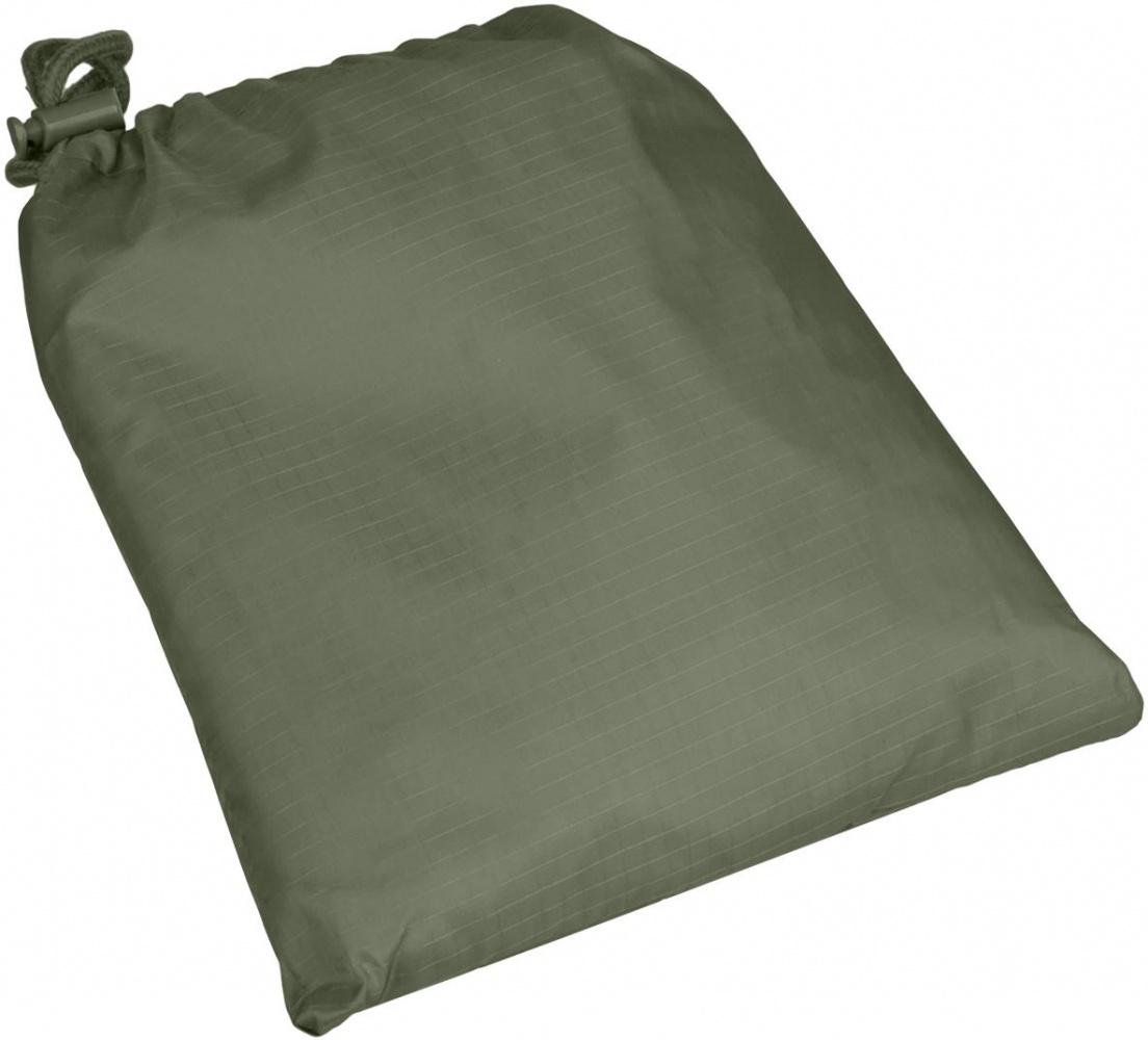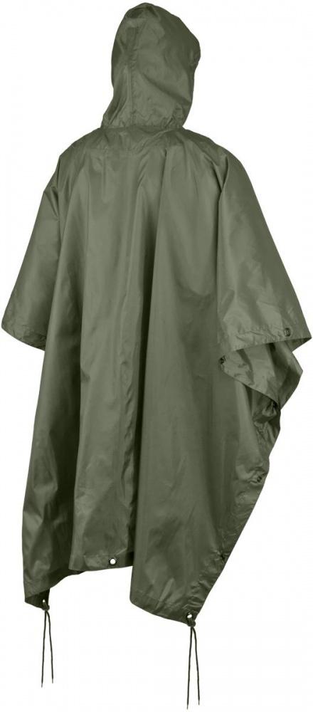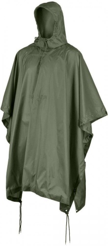 Dežni pončo s kapuco. Izdelan iz RipStop materiala, odpornega na trganje z lepljenimi šivi. Na vsaki strani štiri potisni gumbi za oblikovanje rokavov ali združevanje dveh pončov za izdelavo ponjave. Osem kovinskih rink omogoča uporabo ponča tudi kot šotor. Zložen v transportni vrečki.