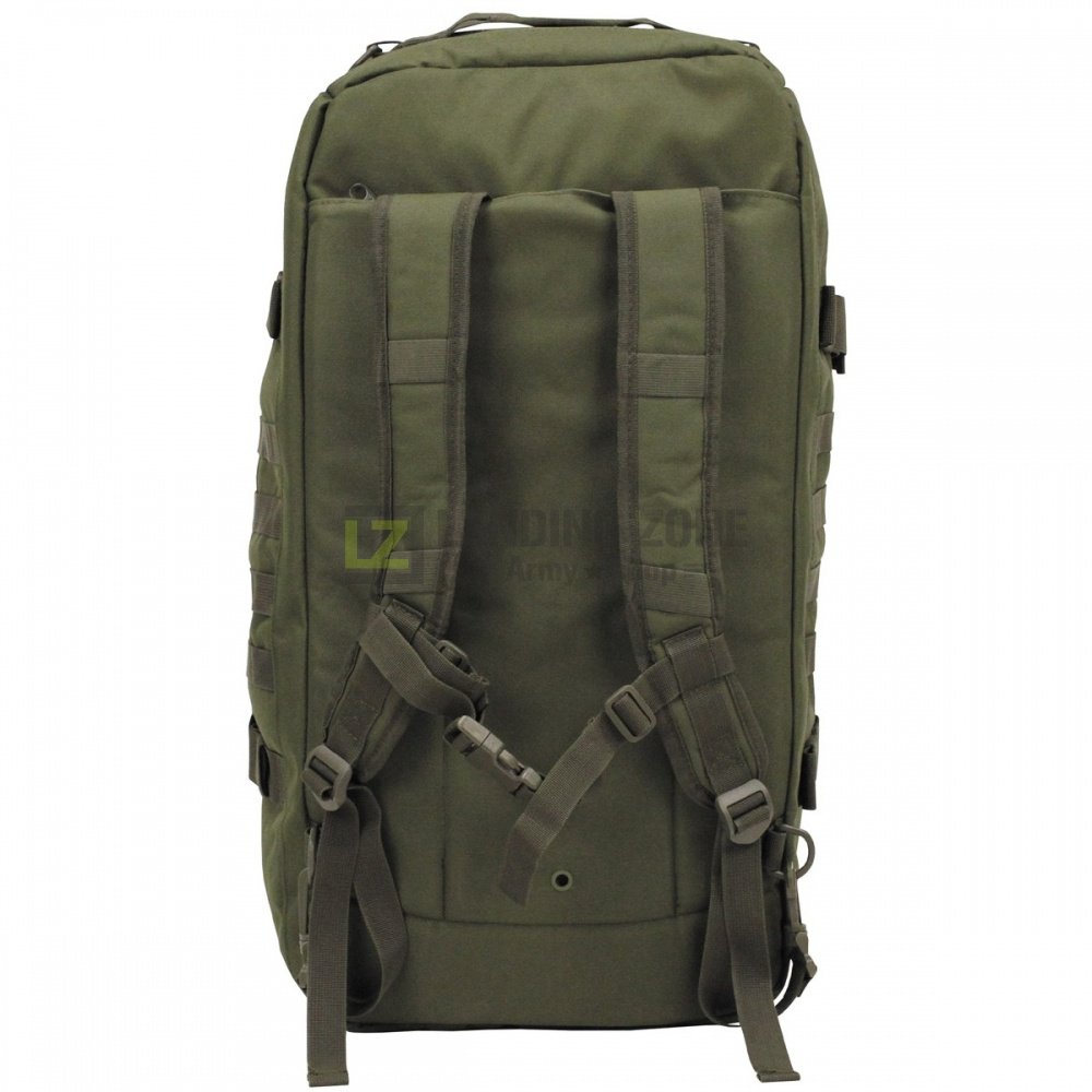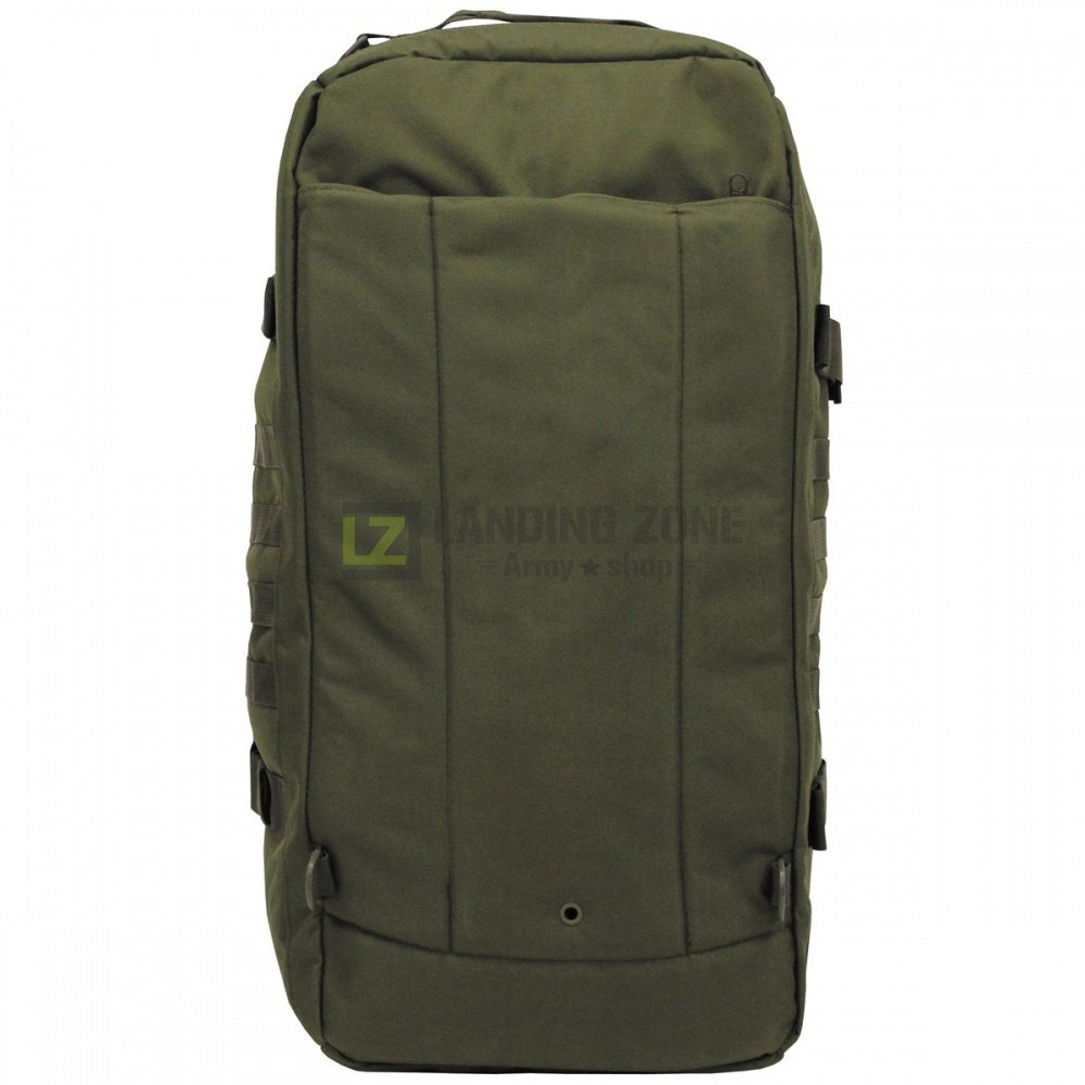 Vsestransko uporabna torba/ nahrbtnik "Travel" z molle kanali. Glavni prostor se odpira z dvostransko zadrgo po celotni dolžini in ga je mogoče pregraditi v tri ločene prekate. V notranjosti všit trak z zaponko za fiksiranje opreme, na notranjem delu pokrova dva mrežna žepa z zadrgo. Zunaj dva dodatna stranska žepa z zadrgo z dvema mrežnima žepkoma v notranjosti ter žep z zadrgo na zunanjem delu pokrova. Ob straneh nahrbtnika kompresijski trakovi, ki so prav tako uporabni za pritrjevanje opreme ( spalna vreča, jakna,... ).