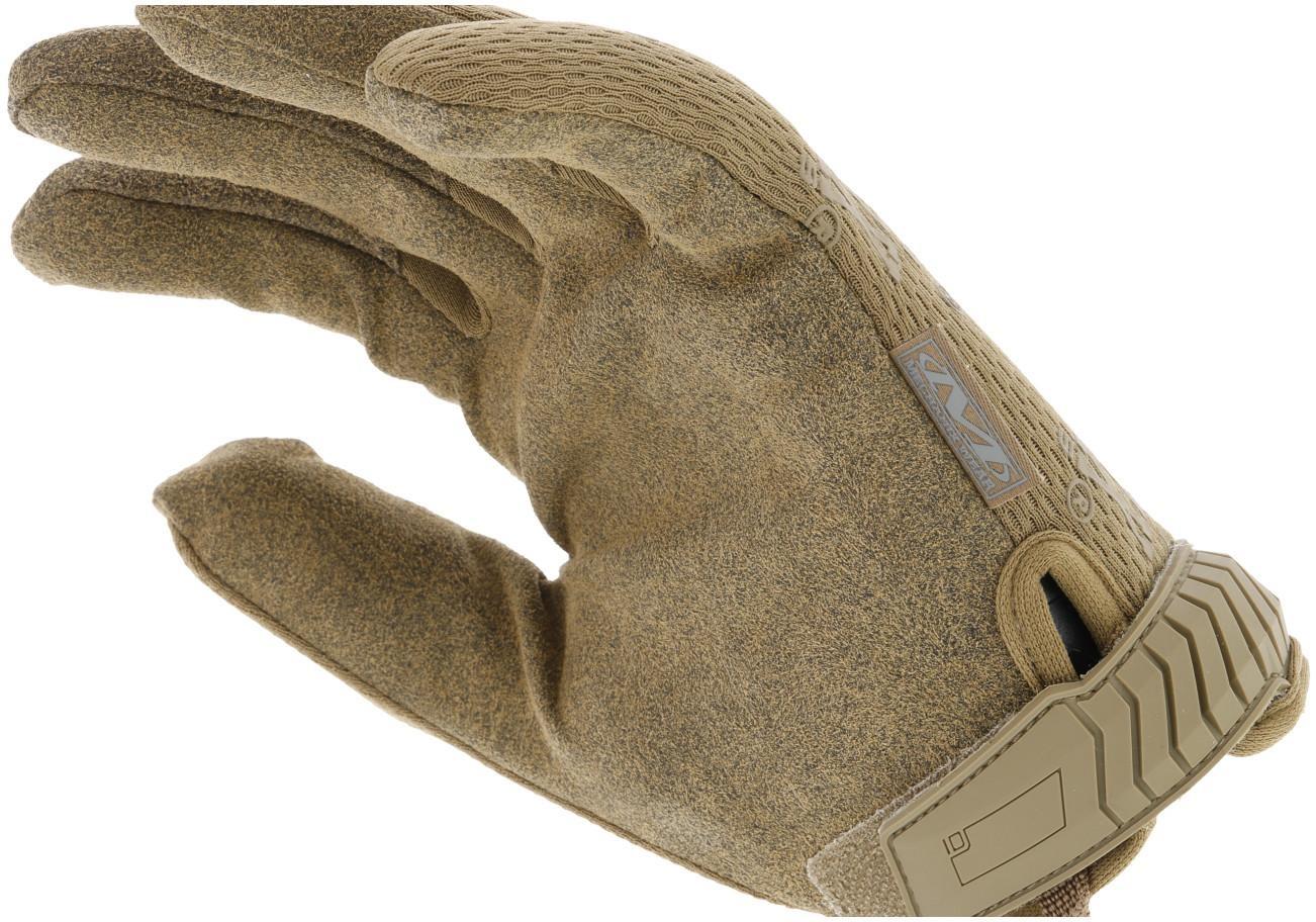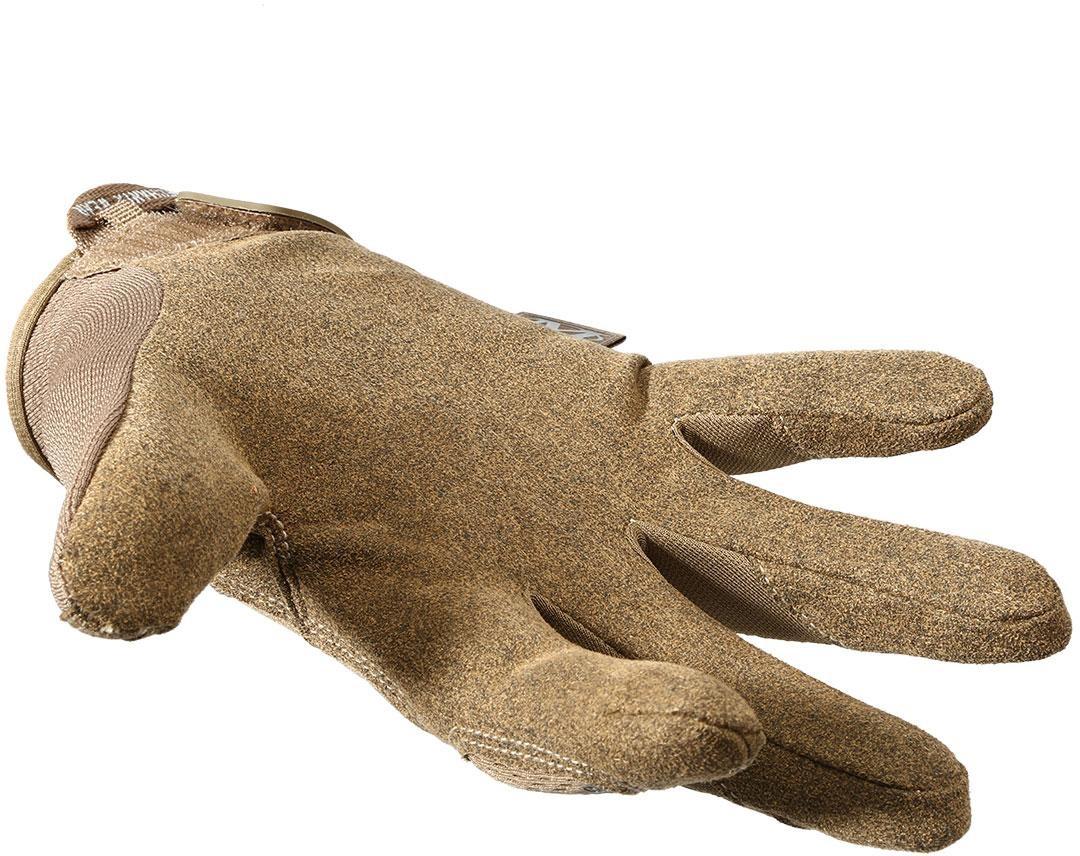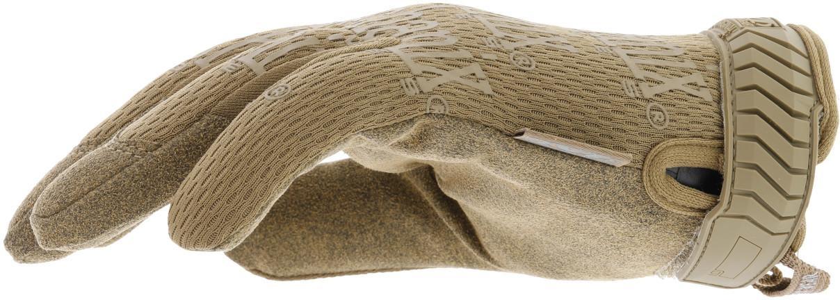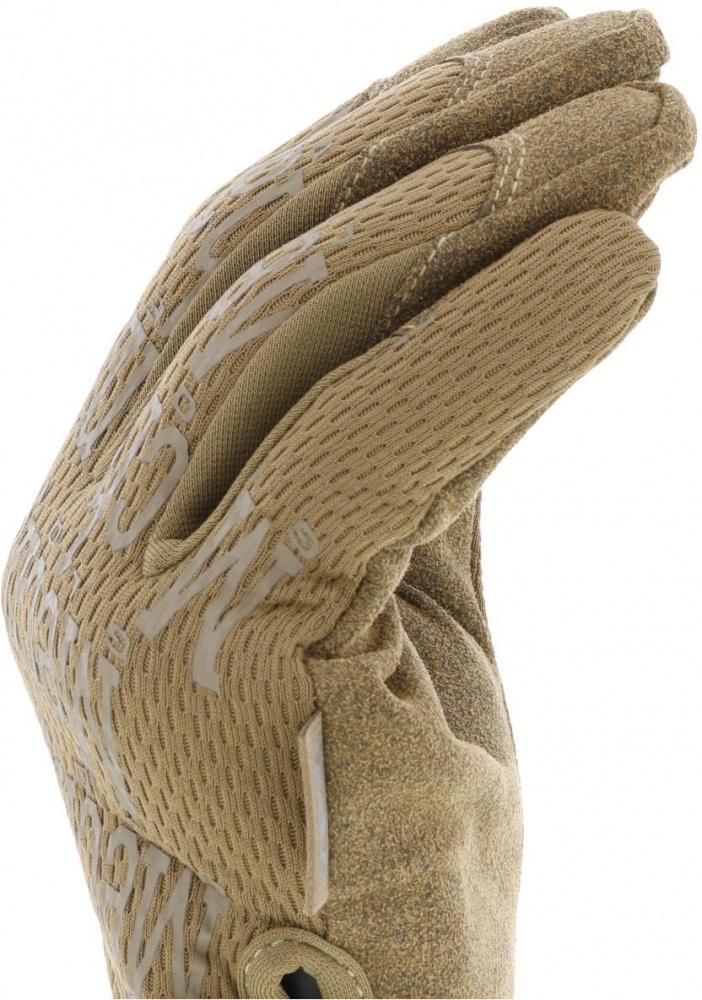 Mechanix rokavice v coyote barvi. Odlikuje jih odlična kombinacije vsestranskosti in vzdržljivosti. Spodnji del rokavic je narejen iz izredno vzdržljivega umetnega usnja. Sintetičen elastičen material in velkro zatezni pašček na zapestjih pa poskrbita, da se rokavice odlično prilegajo.