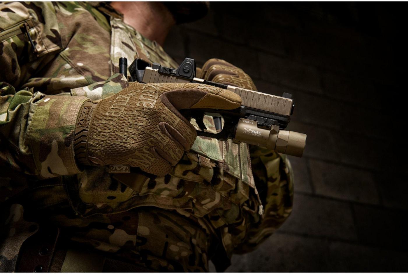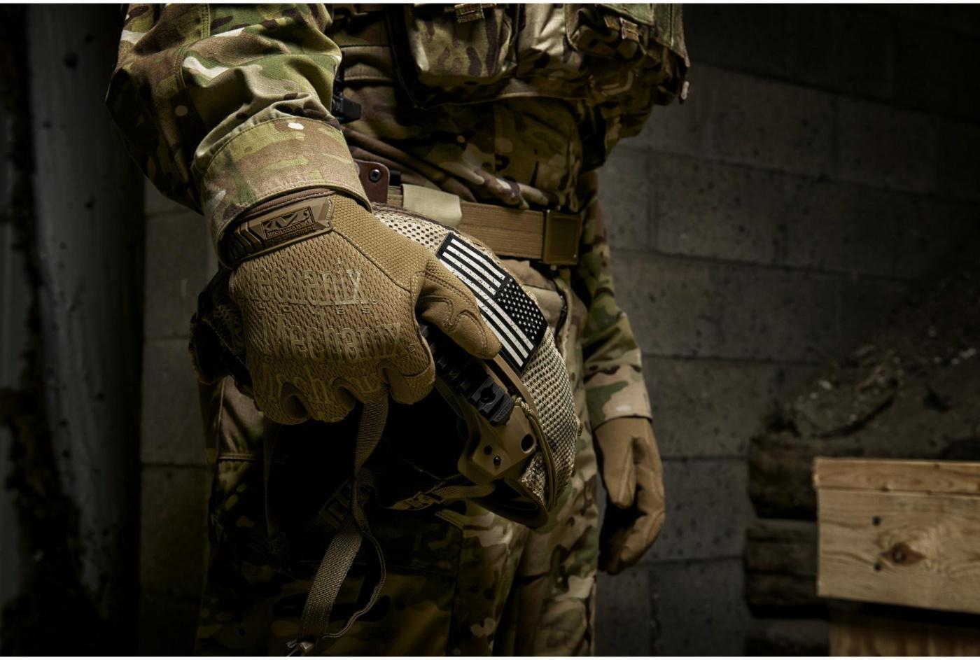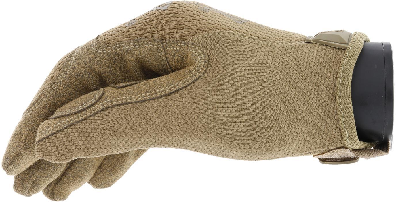 Mechanix rokavice v coyote barvi. Odlikuje jih odlična kombinacije vsestranskosti in vzdržljivosti. Spodnji del rokavic je narejen iz izredno vzdržljivega umetnega usnja. Sintetičen elastičen material in velkro zatezni pašček na zapestjih pa poskrbita, da se rokavice odlično prilegajo.
