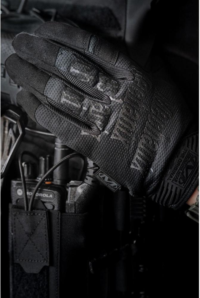 Mechanix rokavice v črni barvi. Odlikuje jih odlična kombinacije vsestranskosti in vzdržljivosti. Spodnji del rokavic je narejen iz izredno vzdržljivega umetnega usnja. Sintetičen elastičen material in velkro zatezni pašček na zapestjih pa poskrbita, da se rokavice odlično prilegajo.