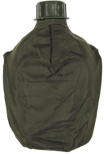 US Čutara v OD zeleni barvi, oblečena v trpežno najlonsko prevleko. Kapaciteta čutare je 1L. Zaponke na prevleki omogočajo namestitev na pas ali nahrbtnik.