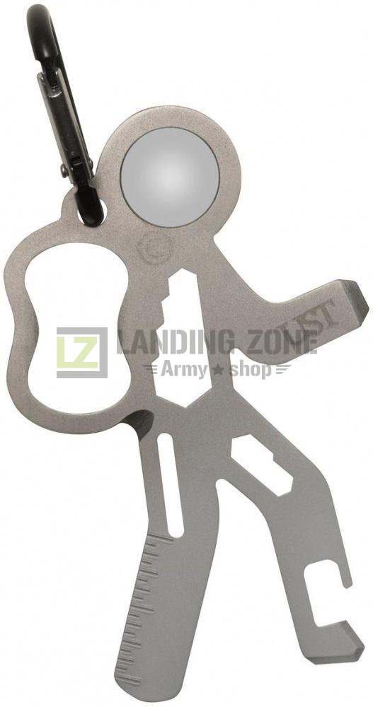 UST orodje Wanderer iz nerjavečega jelkla z karabinom za enostavno nameščanje na jopič, nahrbtnik, pas ali katerokoli drugo vrsto opreme. Priročen je za uporabo in pomoč pri različnih nalogah na prostem ali na poti.