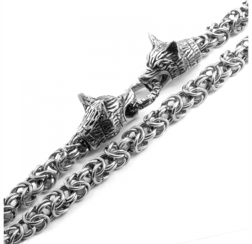 Atraktivna verižica izdelana iz nerjavečega jekla, ki bo zagotovo pritegnila pozornost z edinstvenim dizajnom. Njene oblikovane zaključke krasi podoba dveh volkov, Gerija in Frekija, ki simbolizirata moč, pogum in zvestobo.