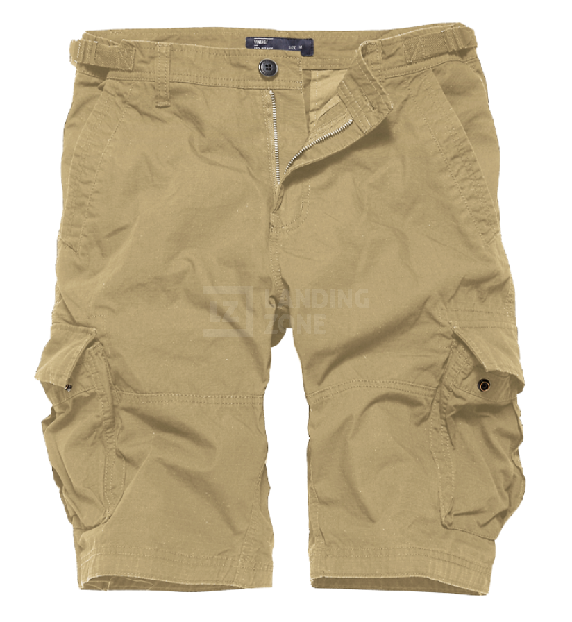 Vintage Industries cargo kratke hlače Terrance iz 100% RipStop bombaža, odpornega na trganje. Izjemno udobne, lahke kratke hlače z ojačanimi šivi na zadnjici in številnimi žepi za spravilo. Hlače se zapirajo z YKK zadrgo, v pasu in hlačnicah so všite tudi zatezne vrvice za prilagajanje širine. Na robu desnega stranskega žepa manjši našitek z imenom proizvajalca.