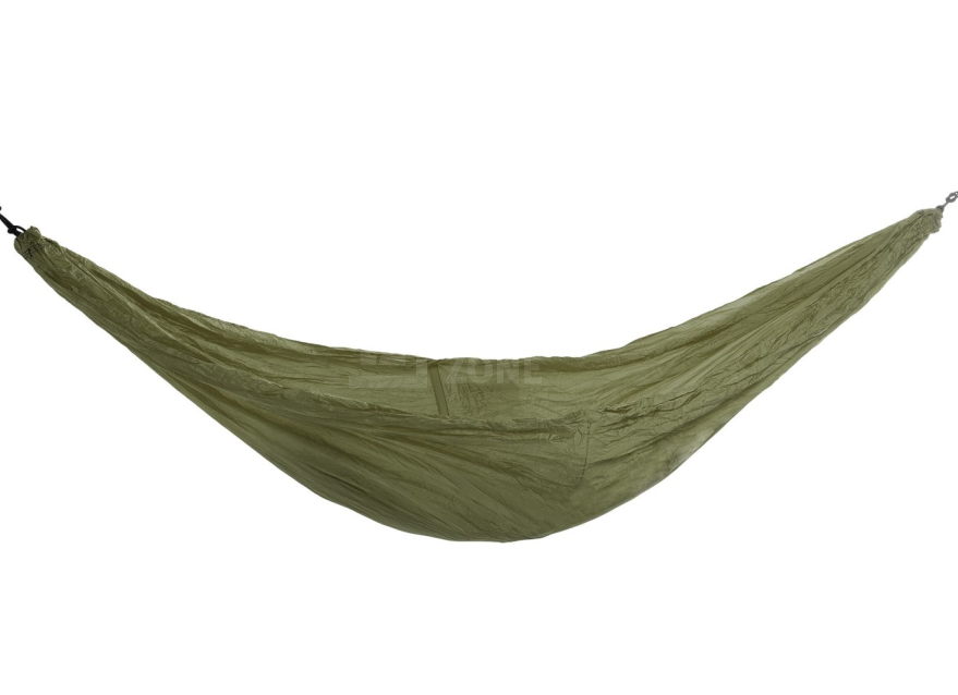 Viseča mreža v zeleni barvi izdelana iz trpežnega in lahkega materiala. Mreža ima priložena dva karabina, ki sta izdelana iz jekla. Mreža je zapakirana v priročni spravilni torbici.
