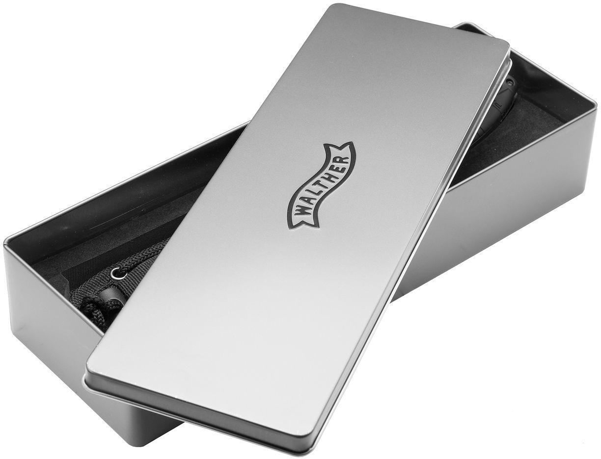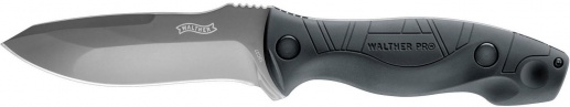 Walther FBK nož s fiksnim rezilom. Ergonomsko oblikovan gumiran ročaj omogoča vano rokovanje. Priložena nožnica, z možnostjo vertikalne ali horizontalne namistitve na pas.