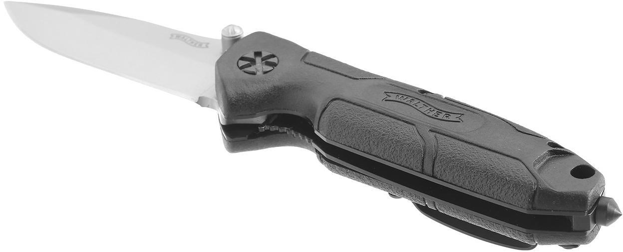 Nož STK 2 s preklopnim rezilom. Ima ergonomsko oblikovano držalo, s konico za razbijanje stekel, ter odstranljivo zaponko za namestitev na žep.